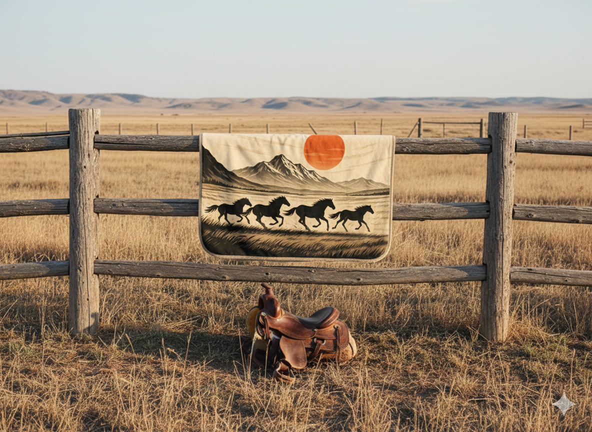 Embrace the wild spirit of Alberta’s foothills with this exceptionally soft minky blanket. Highlighted by a vivid portrayal of wild horses roaming freely across the prairie, it offers a blend of warmth, sophistication, and a nod to Canadian heritage—ideal for adding comfort and style to your bed, sofa, or any place you choose to unwind.