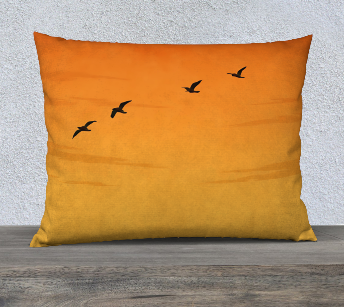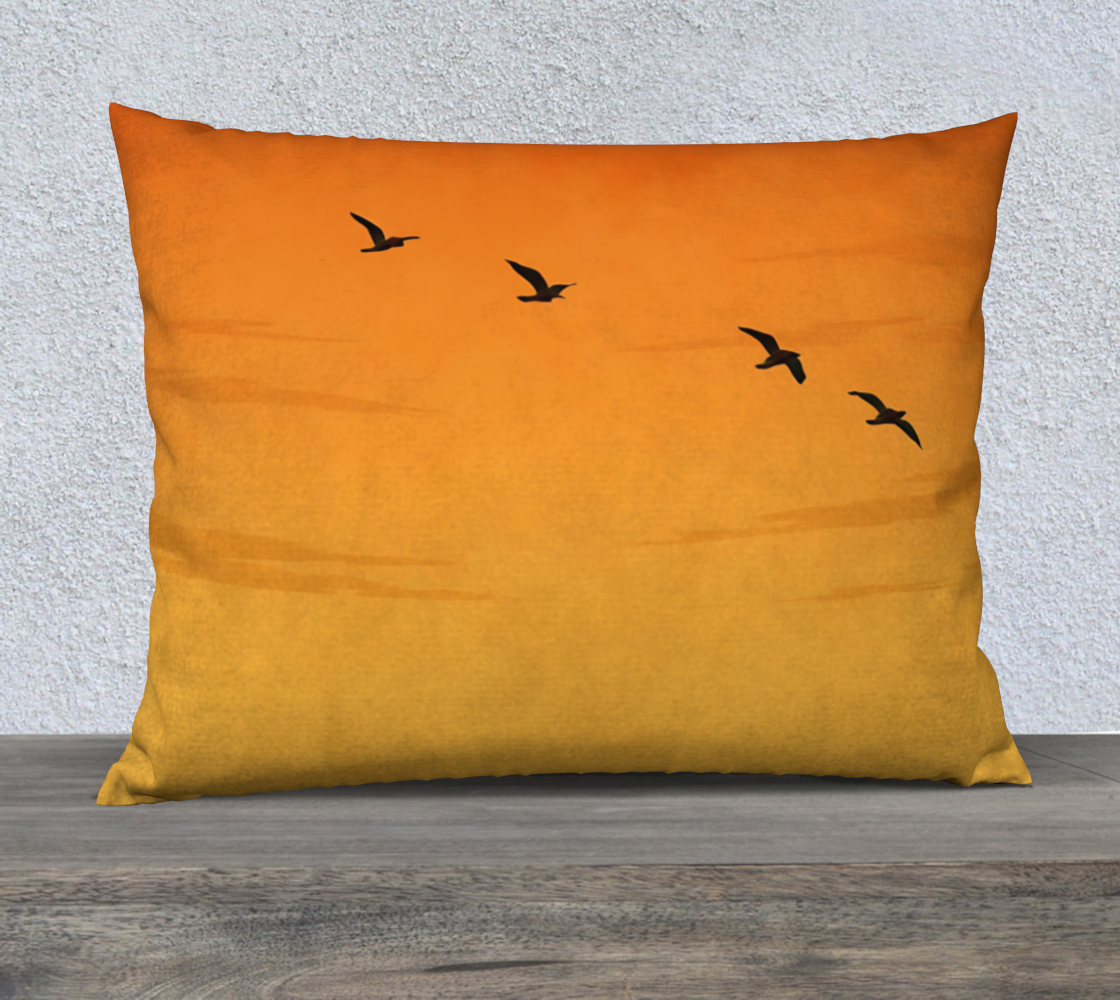 Let your space breathe with the open calm of the prairie sky. The Golden Hour Pillowcase captures the freedom of migrating geese against a warm sunset horizon — simple, soothing, and unmistakably Canadian.